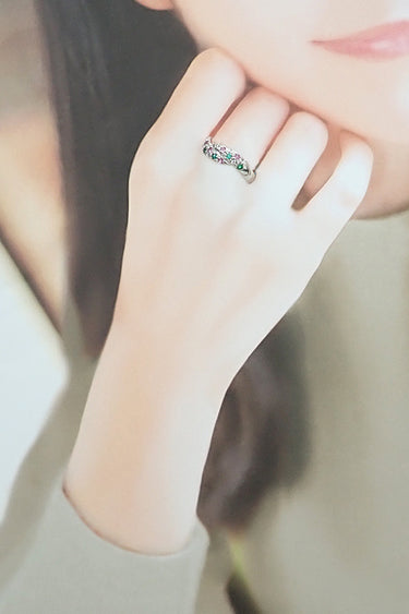 コメント タサキの、ピンクとグリーンの配色が印象的な、サファイアとエメラルドをセットしたリングです。指先を包み込むようなウェーブラインやダイヤモンドのきらめきが、優美でしなやかな印象を与えてくれます。