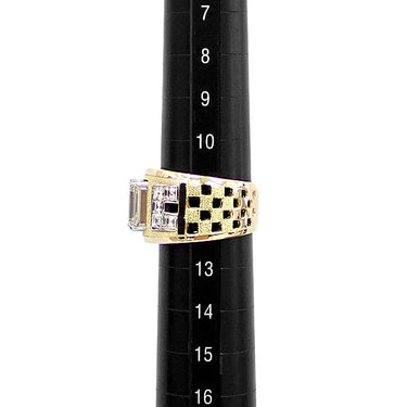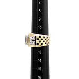 AKコレクション ダイヤモンド リング ダイヤモンド K18イエローゴールド Pt900 AK collection チェック 格子 幅広 太め エメラルドカット 変形カット ファンシーカット 梨地 マット ツヤ消し【中古】【901805】