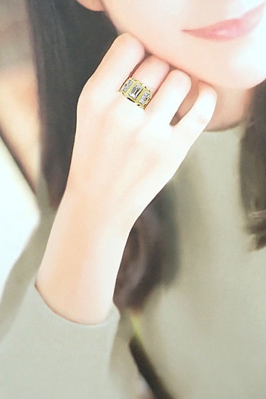 コメント AKコレクションの、思わず見惚れてしまう約1.6ctのエメラルドカットダイヤモンドをセットした、ラグジュアリーなリングです。スクエアカットダイヤモンドやチェック柄のアームなどの直線ラインが、和モダンを感じさせるお洒落なお品です。