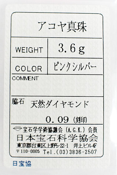 アコヤ真珠 色:ピンクを帯びた淡いブルーシルバー
