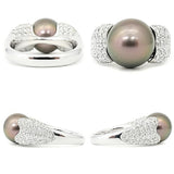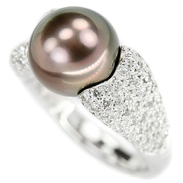 クイーン 黒蝶真珠 リング 11.3mm ダイヤモンド K18WG パヴェ ブランド Queen 平和堂貿易 | 18金 黒蝶真珠 黒真珠 南洋真珠 南洋パール タヒチ ブラックパール かわいい おしゃれ【中古】【SH100680】