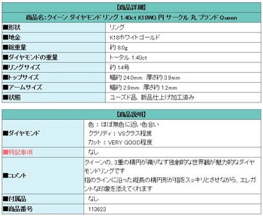 商品名:クイーン ダイヤモンド リング 1.40ct K18WG 円 サークル 丸 ブランド Queen