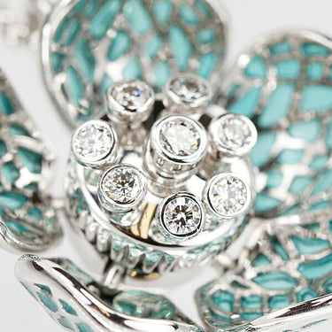 めしべのダイヤモンドがチラチラと揺れて輝き、お花の生き生きとした様子がデザインに落とし込まれたこだわりを感じるお品です