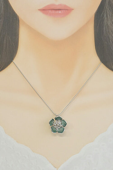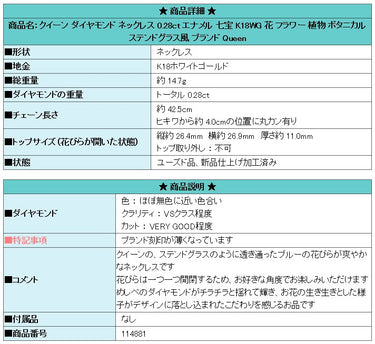 商品名:クイーン ダイヤモンド ネックレス 0.28ct エナメル 七宝 K18WG 花 フラワー 植物 ボタニカル ステンドグラス風 ブランド Queen