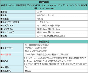 商品名:クイーン 平和堂貿易 ダイヤモンド リング 1.17ct K18YG パヴェ ダブル ツイン クロス 重ね付け風 ブランド Queen HCO