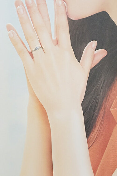 平和堂貿易の、6本爪でセットされたダイヤモンドがきらめく、ロマンティックなリングです