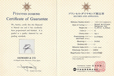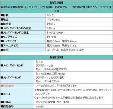 商品名:平和堂貿易 ダイヤモンド リング 0.301ct Pt950 グレード付き 鑑定書 6本爪 ウェーブ ブランド HCO