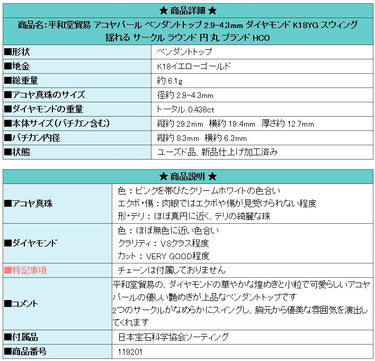 商品名:平和堂貿易 アコヤパール ペンダントトップ 2.9-4.3mm ダイヤモンド K18YG スウィング 揺れる サークル ラウンド 円 丸 ブランド HCO