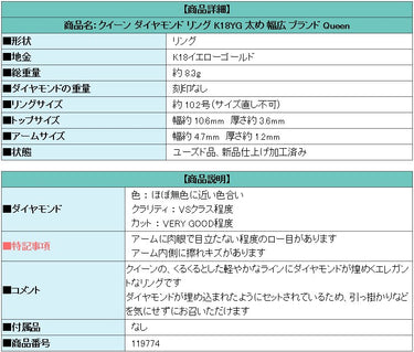 商品名:クイーン ダイヤモンド リング K18YG 太め 幅広 ブランド Queen