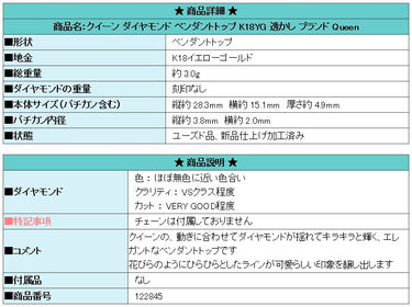 商品名:クイーン ダイヤモンド ペンダントトップ K18YG 透かし ブランド Queen