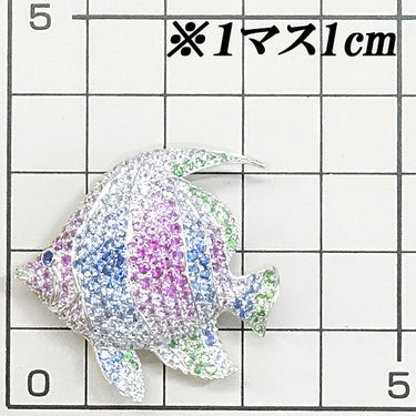 クイーン サファイア ブローチ グリーンガーネット K18ホワイトゴールド Queen 魚 動物 アニマル グラデーション カラフル【中古】【123881】
