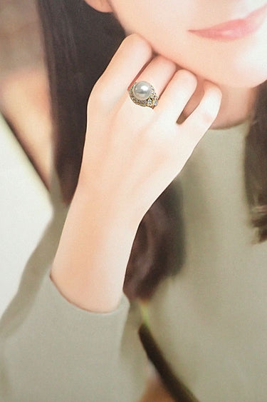 コメント クイーンの、ホワイトカラーの大きな白蝶パールがセットされた、エレガントな雰囲気のリングです。取り巻きのテリの良いダイヤモンドが眩い輝きを放ち、お手元をラグジュアリーな印象へと導きます。