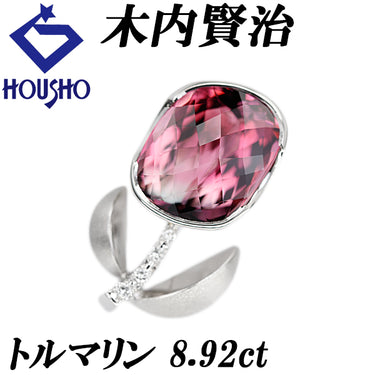 商品名 木内賢治 トルマリン ペンダントトップ ダイヤモンド Pt900 KENJI KIUCHI 作家 デザイナー 花 フラワー 植物 ボタニカル 梨地 ツヤ消し マット