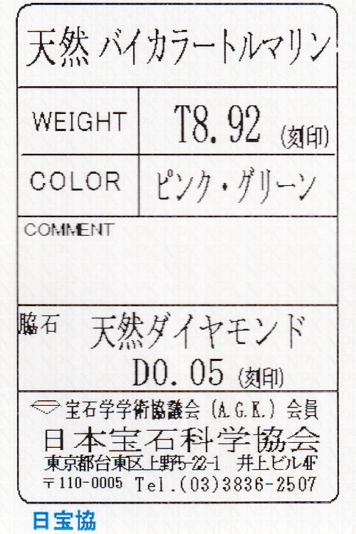 トルマリン 色:パープリッシュピンク~グリーンがかったピンクのバイカラー