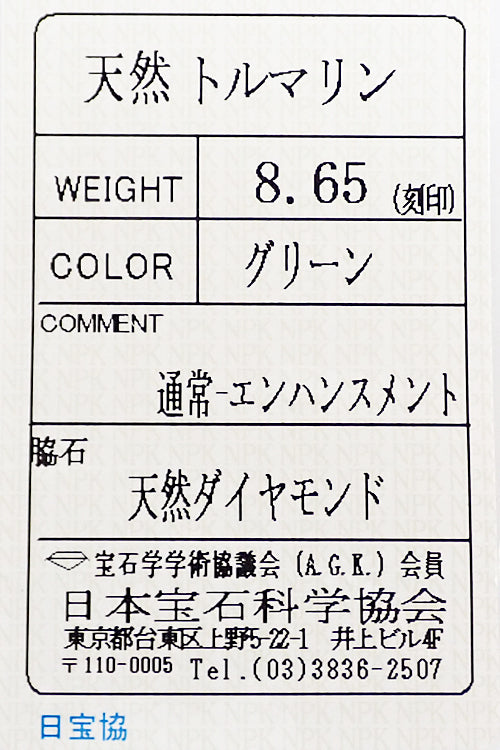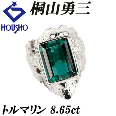 桐山勇三 トルマリン リング ダイヤモンド Pt900 YUZOU KIRIYAMA 作家 デザイナー 幅広 太め【中古】【903158】