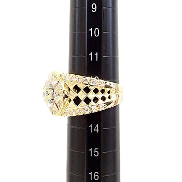 梶光夫 イエローダイヤモンド リング ダイヤモンド K18イエローゴールド K18ホワイトゴールド MITSUO KAJI 透かし チェック 太陽 花 フラワー 幅広 太め【中古】【125347】
