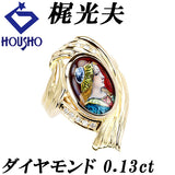 梶光夫 ダイヤモンド リング K18イエローゴールド Pt900 MITSUO KAJI 作家 デザイナー エマイユ クリスティーヌ・シェロン エナメル 七宝 女性 梨地 ツヤ消し マット【中古】【901476】