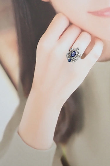 檜佐賢治 ブルーサファイア リング ダイヤモンド Pt900 KENJI HISA 作家 デザイナー 透かし【中古】【901521】