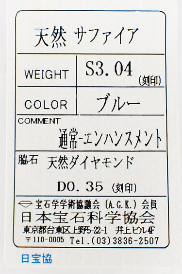 特記事項 アームに肉眼で目立たない程度のロー目があります。サファイア台座側面に、肉眼では目立たない程度の小傷があります。