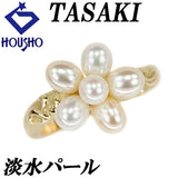 タサキ 田崎真珠 淡水パール リング 3.8-4.2mm K18YG 花 フラワー 植物 ボタニカル 梨地 マット ツヤ消し ウェーブ TASAKI | 18金 淡水真珠 白真珠 デイリーユース 上品 かわいい おしゃれ【SH119468】