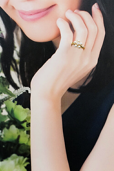 タサキの、コロンとした淡水パールがブーケのようにセットされた可愛らしいリングです