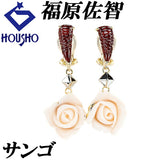 福原佐智 サンゴ ピアス ガーネット K18YG Pt900 花 フラワー 植物 ボタニカル バラ 薔薇 ローズ 珊瑚 コーラル 作家 デザイナー | 18金 クラシカル かわいい おしゃれ【中古】【SH119663】