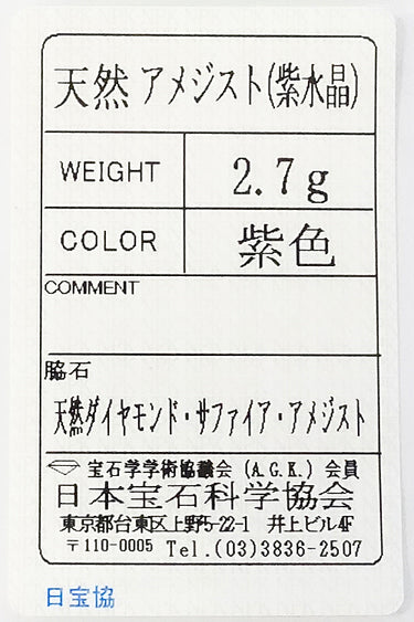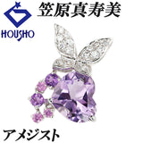 コメント 笠原真寿美の、ピュアな輝きをみせるハート型のアメジストが、キュートな雰囲気のペンダントトップです。メレダイヤモンドの華やかな輝きに身を包む蝶も可愛らしく、フェミニンな印象を高めてくれる一品です。