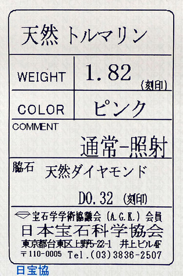 ピンクトルマリン 色:落ち着いたパープリッシュピンクの色合い