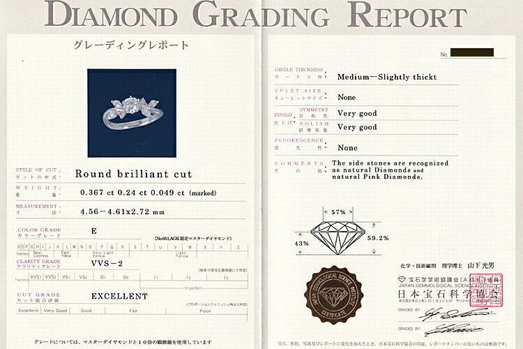 日本宝石科学協会鑑定書(カバーあり)