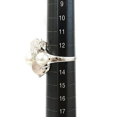 タサキ 田崎真珠 クォーツ リング アコヤパール ダイヤモンド K18WG 桜 サクラ 花 フラワー 植物 ボタニカル TASAKI | 18金 あこや真珠 白真珠 和珠 ダイアモンド 上品 かわいい【中古】【SH119176】