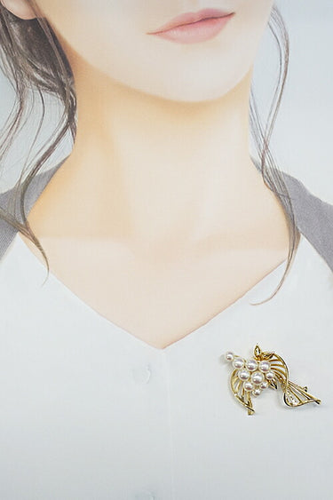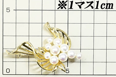 ミキモト アコヤパール ブローチ 5.0-7.2mm K14YG 葉 リーフ 植物 ボタニカル 透かし ブランド MIKIMOTO | 14金 あこや真珠 白真珠 和珠 上品 エレガント かわいい おしゃれ【中古】【SH119699】