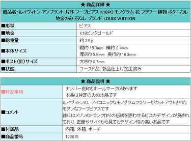 商品名:ルイヴィトン アンプラント 片耳 フープピアス K18PG モノグラム 花 フラワー 植物 ボタニカル 地金のみ 石なし ブランド LOUIS VUITTON