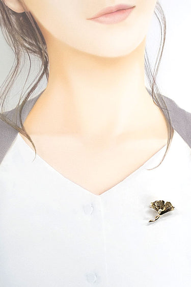 コメント タサキの、イチョウの葉に1石のダイヤモンドがセットされた、上品だけどどこか可愛らしいブローチです。