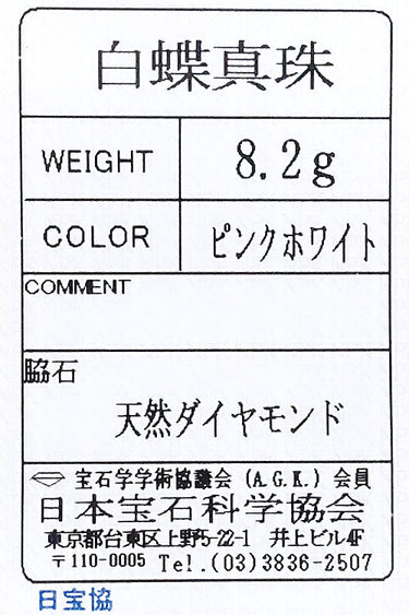 白蝶真珠(南洋真珠) 色:ピンクを帯びたクリームホワイトの色合い