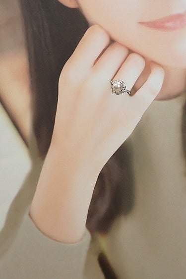 コメント タサキの、艶やかで程よい血色感を感じる、アコヤパールの上品なリングです。取り巻きのダイヤモンドは花びらのようなフォルムをしており、さり気なく可愛らしさをまとえるお品です。