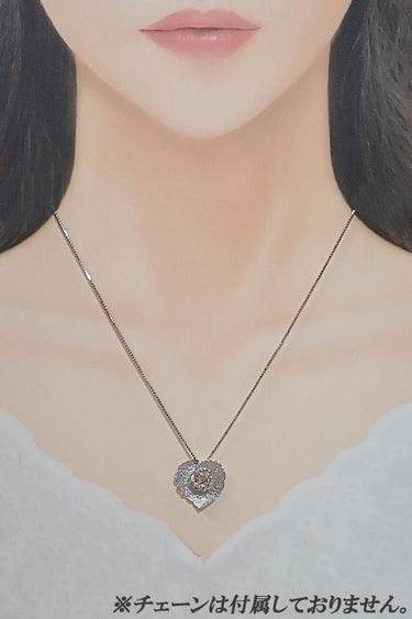 コメント ハート型の蓮の葉のようなデザインが温かみのあるペンダントトップです。中央のくるりと円を描くレースのようなラインには、さり気なくきらめくダイヤモンドがセットされています。