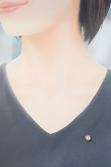 コメント ミキモトの、艶やかなアコヤパールを使用した上品なピンブローチです。お花のような石座のデザインがさり気なく可愛らしさを添えてくれます。