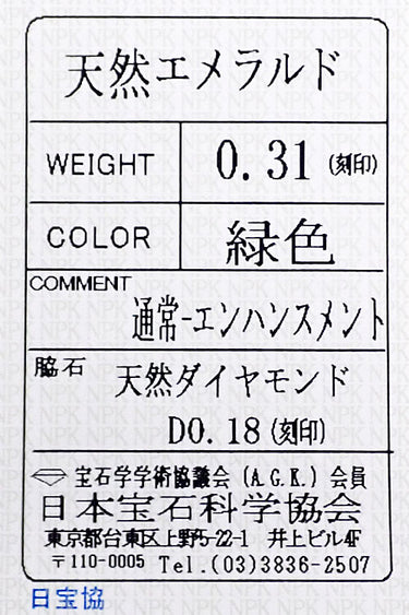 エメラルドの重量 0.31ct