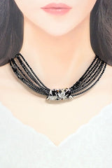 コメント 山本真理の、オニキスとヘマタイトを使用したブラックのグラデージョンがシックな雰囲気のネックレスです。トップはアールヌーヴォー調のボタニカルモチーフで、オニキスの深いブラックがアクセントになりホワイトゴールドの凛とした輝きを引き立てます。