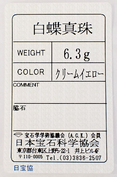 白蝶真珠(南洋真珠) 色:グリーンを帯びたクリームイエロー