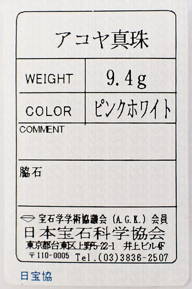 アコヤ真珠 色:ピンクを帯びたホワイトの色合い