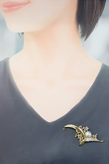 コメント ミキモトの、軽やかで大胆なラインにダイヤモンドが華やかに煌めく、ラグジュアリーなブローチです。細やかな草花の中に佇む白蝶パールが、存在感と気品を漂わせます。