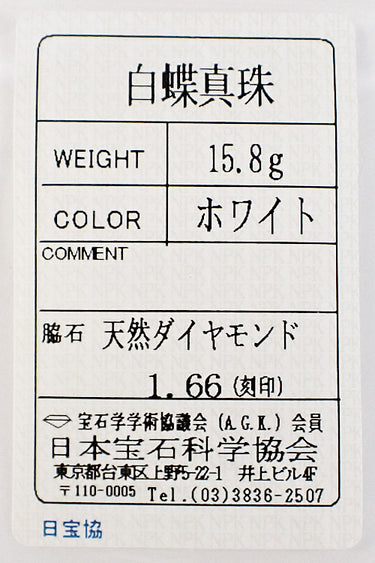 白蝶真珠(南洋真珠) 色:クリームホワイトの色合い