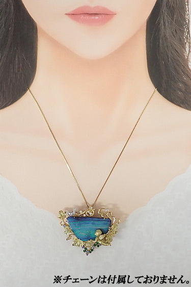 商品名 若林佐代子 ボルダーオパール ブローチ ダイヤモンド タンザナイト ガーネット K18イエローゴールド Pt900 ペンダントトップ 作家 デザイナー 天使 月 ムーン 植物 ボタニカル 梨地 マット ツヤ消し