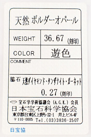 ボルダーオパールの重量 36.67ct