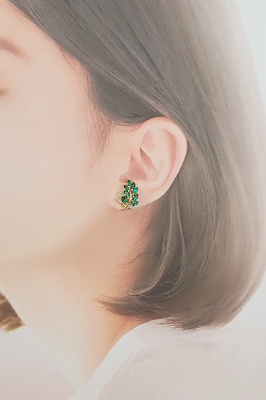 コメント タサキの、鮮やかなエメラルドをセットした、ボタニカルモチーフのイヤリングです。青々と茂る葉っぱのモチーフがお顔周りをフレッシュな印象にしてくれます。