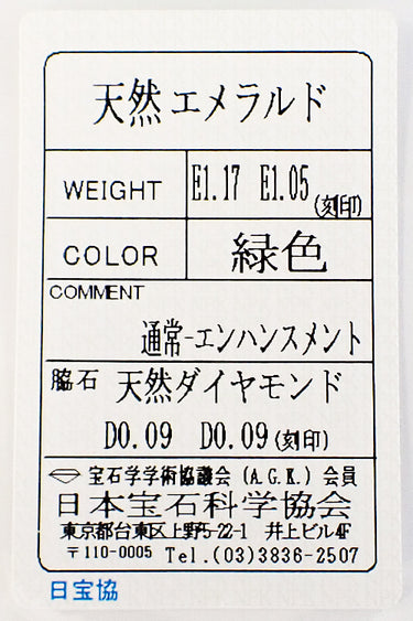 エメラルドの重量 1.17ct 1.05ct