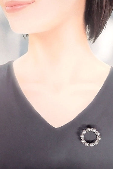 コメント タサキの、リーフモチーフとアコヤパールが交互に紡がれた、清楚な雰囲気のサークル型のブローチです。アコヤパールの艶やかな光が、華やかさをふんわりと演出してくれます。