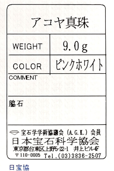 アコヤ真珠 色:ピンクを帯びたホワイトの色合い