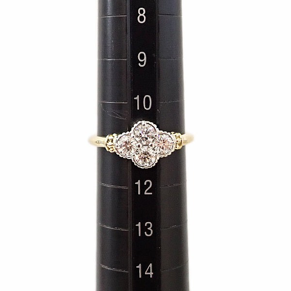 ダイヤモンド リング K18イエローゴールド Pt900 花 フラワー 植物 ボタニカル コンビ【中古】【901463】